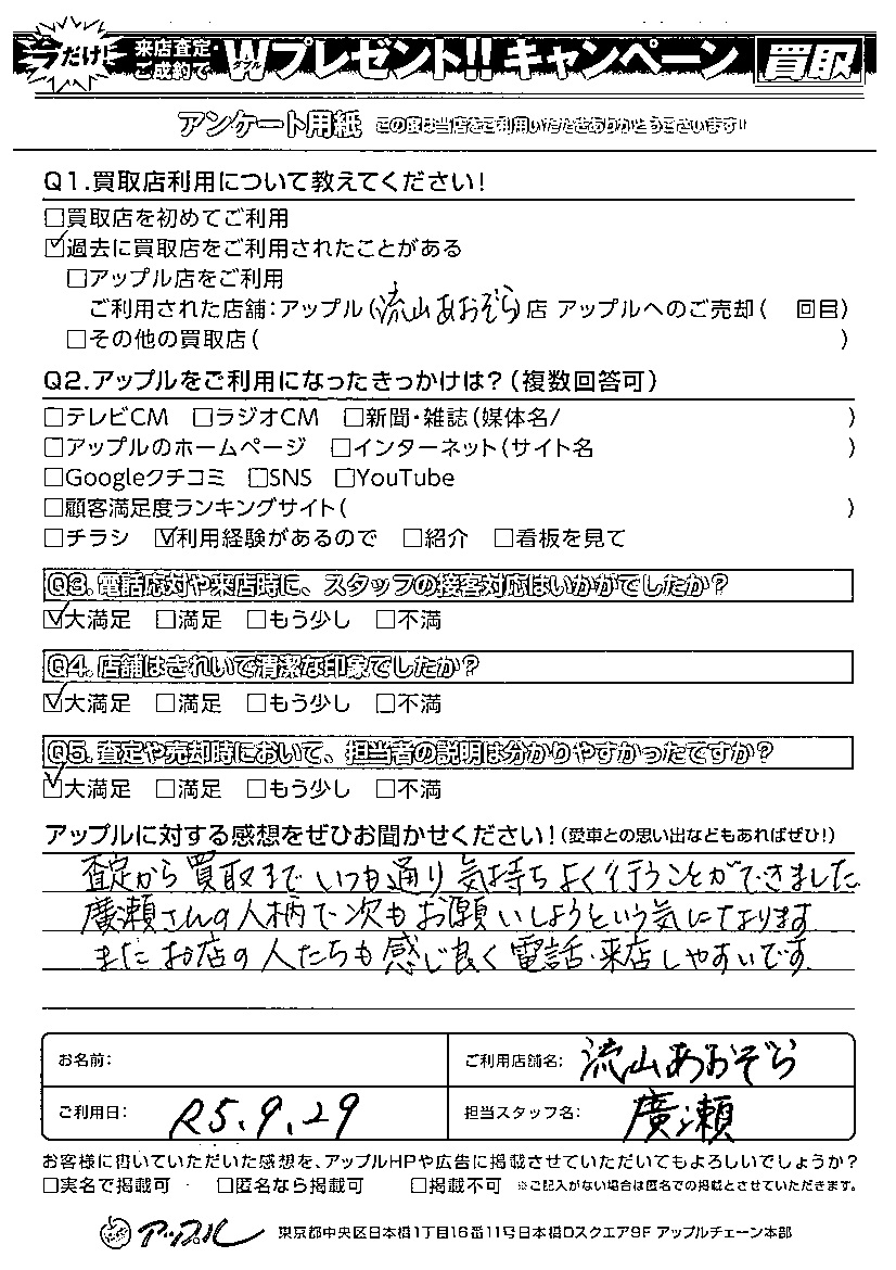 車愛のあるスタッフに対応してもらえてうれしかったです。