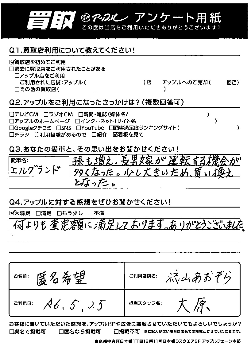 K様 車名:日産 エルグランド