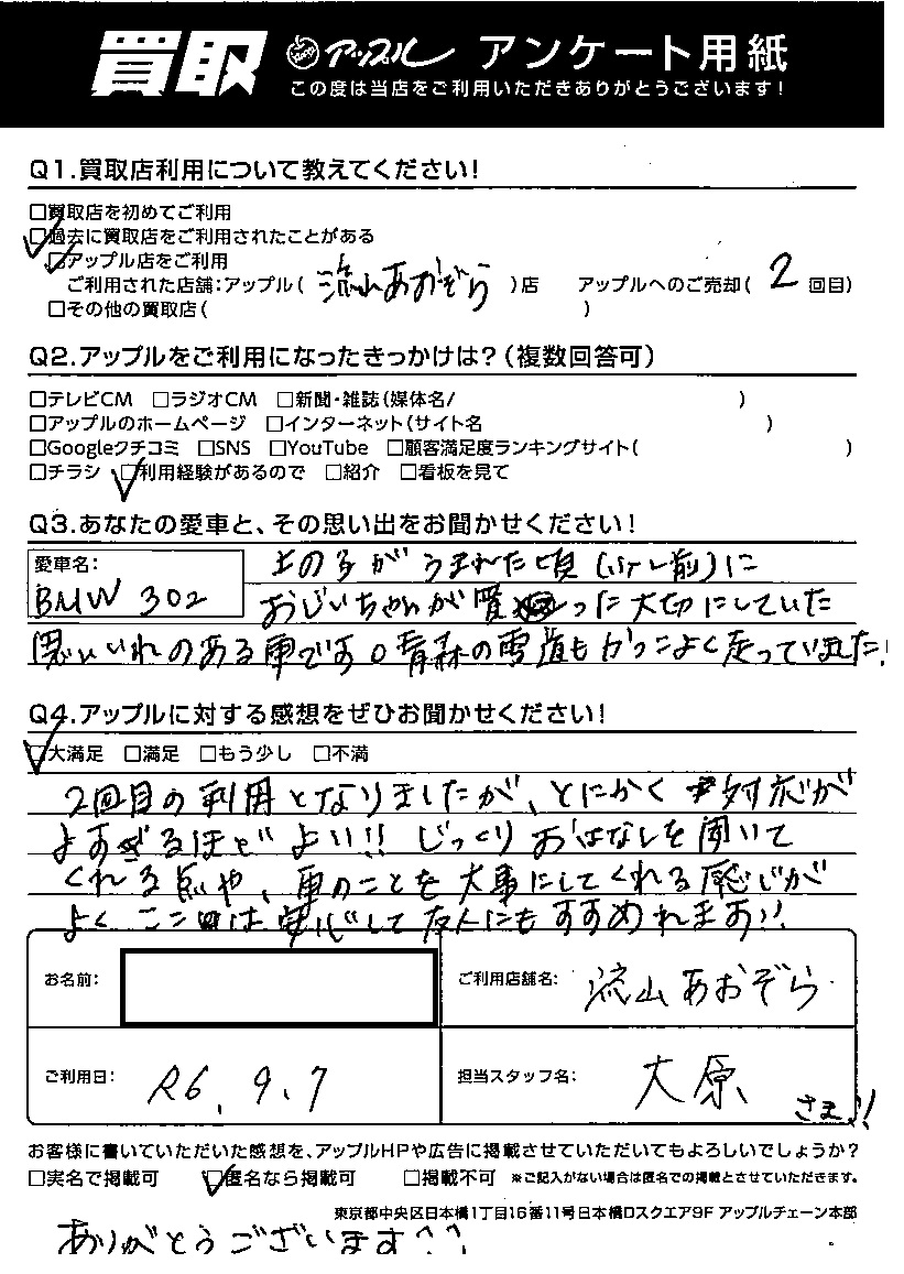 S様 車名:BMW 3シリーズセダン