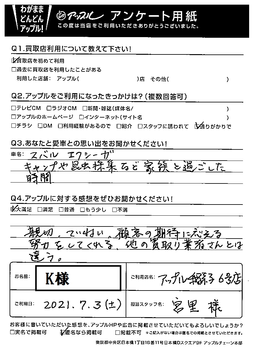 親切。ていねい。顧客の期待に応える努力をしてくれる。