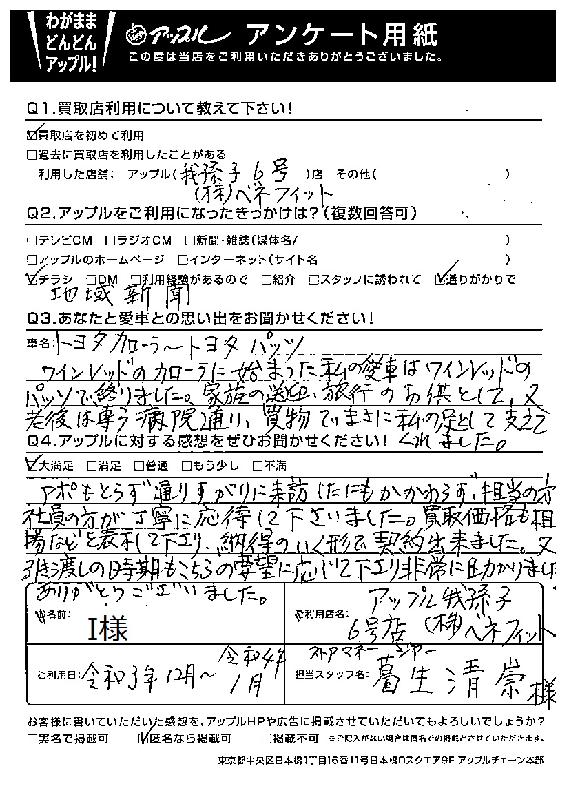 又、引き渡しの時期もこちらの要望に応じて下さり非常に助かりました。