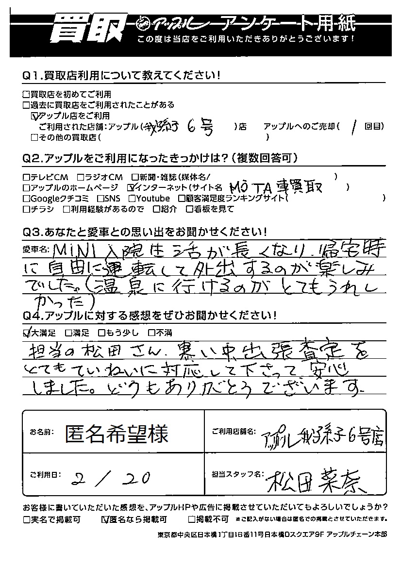 国名希望様 車名:ミニ ミニ