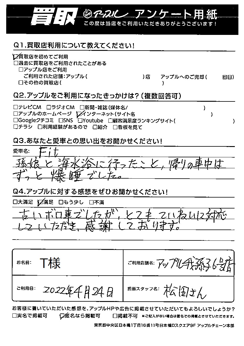 T様 車名:ホンダ フィット(H25年9月以降のハイブリッド含む)