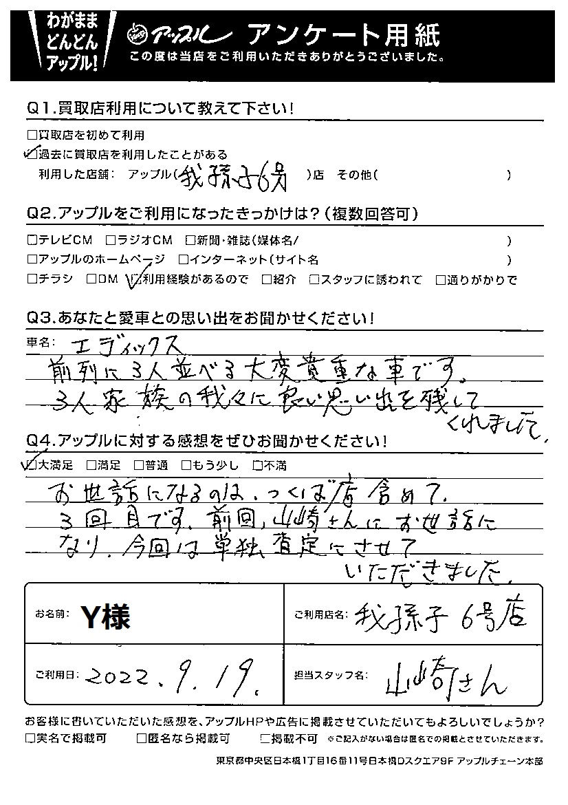 Y様 車名:ホンダ エディックス