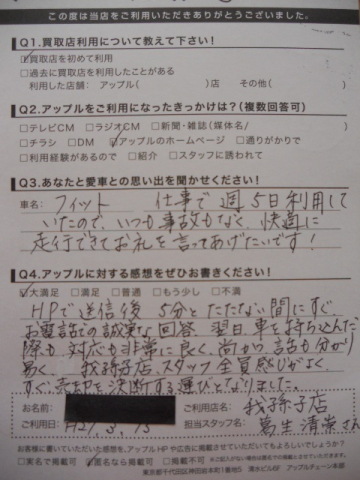 易く、我孫子店スタッフ全員感じがよく、すぐ売却を決断する