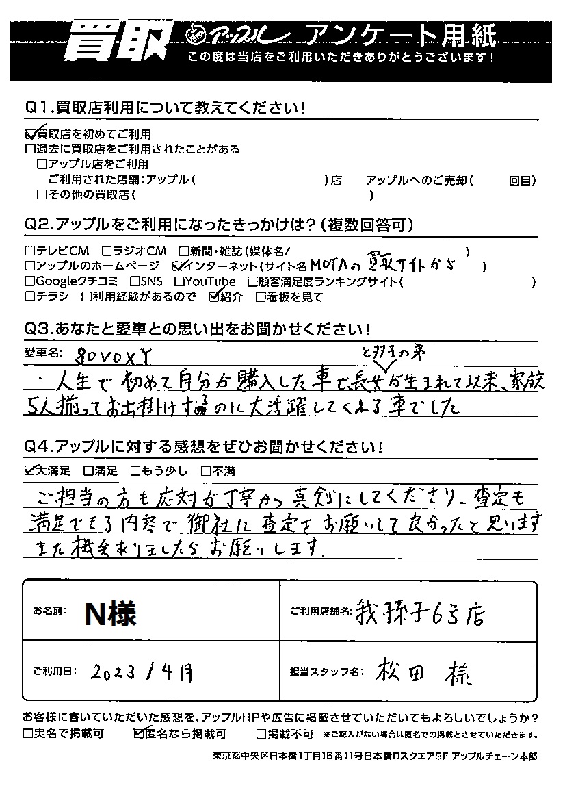 N様 車名:トヨタ ヴォクシー