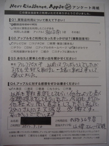 もらいました。今回も、もちろん他社より高く査定をして下さい