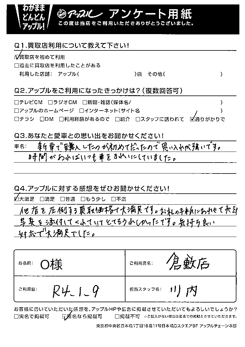 他店を圧倒する買取価格で大満足です。お礼の手紙にあわせて売却