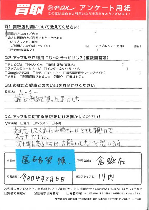 次も車を売る時はお願いしたいと思います。