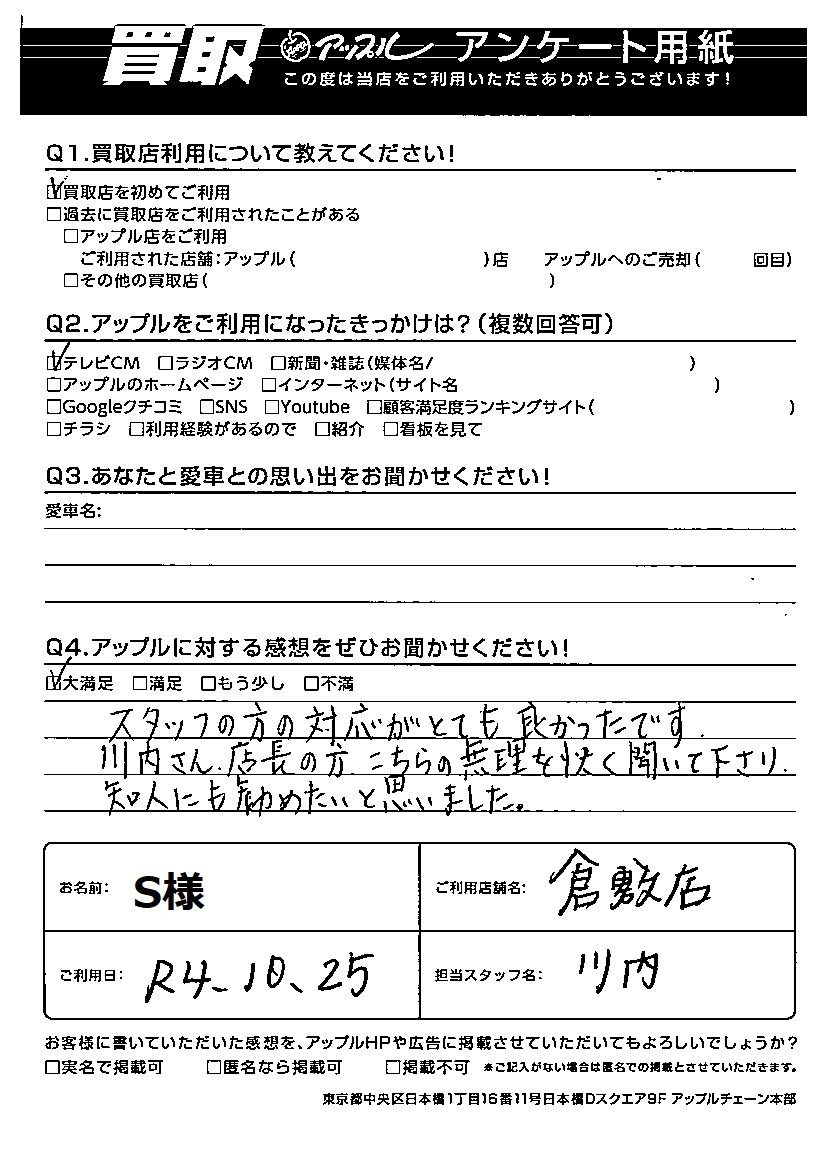 ご利用日:R4年10月25日 担当:川内