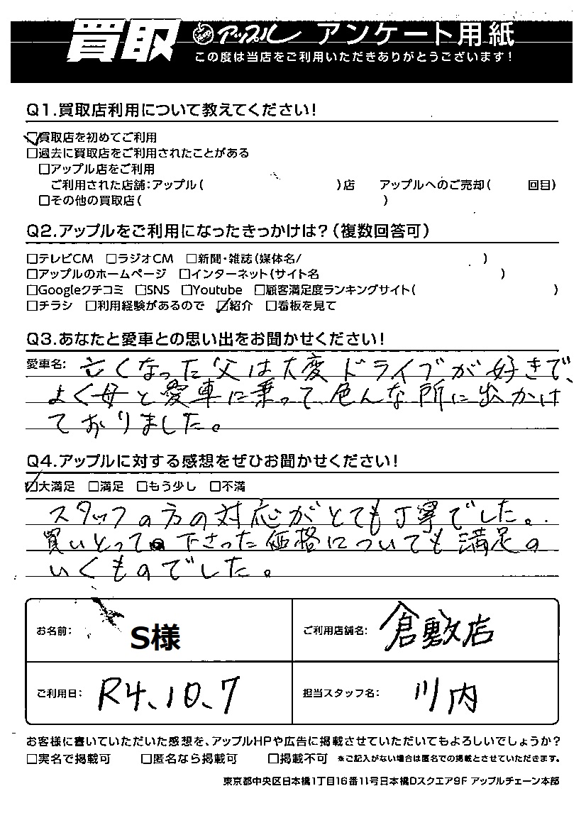 ご利用日:2022年10月7日 担当:川内