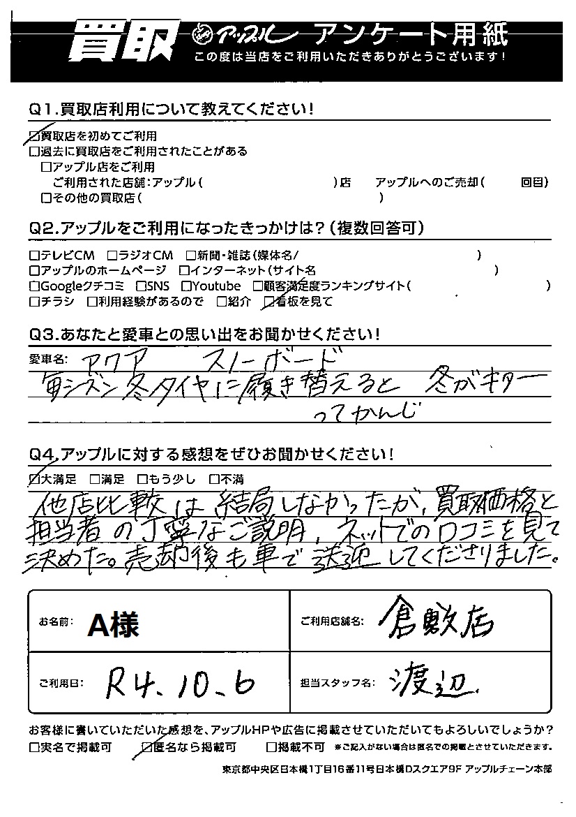 ご利用日:2022年10月6日 担当:渡辺