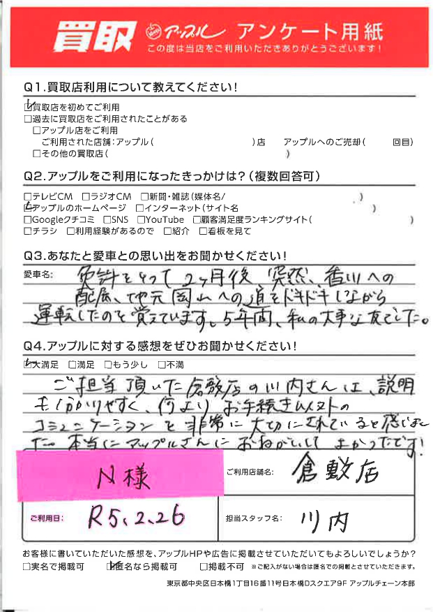 ご担当頂いた倉敷店の川内さんは、説明も分かりやすく