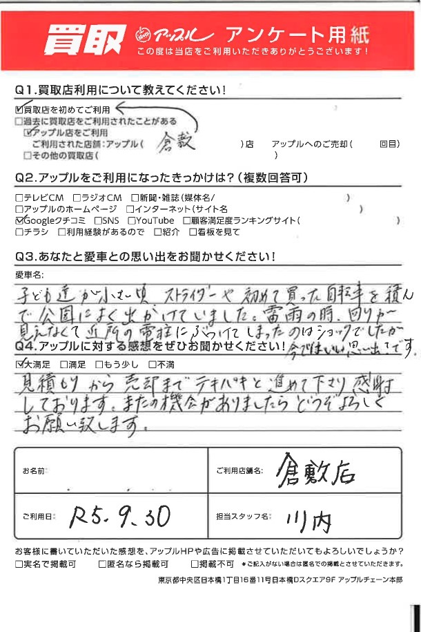 ご利用日:令和5年9月30日 担当:川内