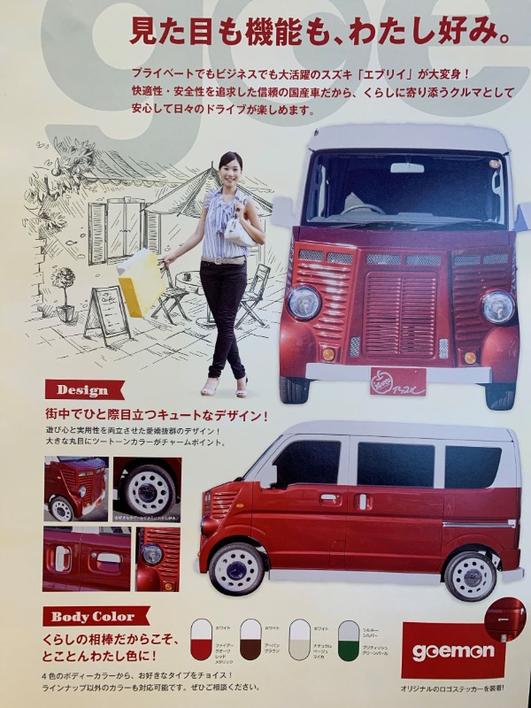 お車のご相談・ 査定だけでもOK! カンタン 入力 30秒 アップルがブランド買取始めました! お電話でも受付中! 受付時間10:00 ~ 19:00 04-7197-4436 お車のご相談・ 査定だけでもOK! カンタン 入力 30秒 アップルがブランド買取始めました! お電話でも受付中! 受付時間10:00 ~ 19:00 04-7197-4436 アップルがブランド買取始めました! お電話でも受付中! 受付時間10:00 ~ 19:00 04-7197-4436 店舗情報 在庫車 スタッフ紹介 ブログ お客様の声 キャンペーン 無料査定 click [ つぶやき ] 2022/01/23 (日) 11:14 はじめまして、ぼく『goemon』 🚗: こんにちは! ぼく『goemon(ゴエモン)』だよ♪🚗 : たぶん、はじめましての人が多いと 思うから自己紹介するね(^^)/ 🚗 : スズキの「エブリイ」がベースに なってて、色々なパーツを組み合わ せて、 お気に入りの1台にできるんだ✨🚗 : なんといっても、かわかっこいい デザインだから、どこに行っても 目立っちゃうよ~(〃▽〃)ポッ🚗 : 柏中央店には、レッドとグリーンが あるから、一度見に来てほしいな♪ 他にも… ブラウンとベージュがあるから 見たいときはお店の人に言ってね! 2022-01-23 11:14:15 新しい記事へ 古い記事へ 最新記事 ★完全無料の手数料!★★必要書類についてのご案内★★買取価格はどう決まるの?★★キッズコーナーのご紹介★★ユーザーダイレクト販売とは?★ 店舗情報に戻る 月別アーカイブ 2025年06月(3)2025年05月(3)2025年03月(5)2025年02月(2)2025年01月(3)2024年09月(3)2024年08月(5)2024年07月(2)2023年04月(2)2023年01月(2)2022年12月(2)2022年11月(3)2022年10月(2)2022年09月(1)2022年07月(1)2022年06月(2)2022年05月(1)2022年04月(1)2022年01月(2)2021年12月(1)2021年11月(1)2021年08月(4)2021年07月(3)2021年06月(6)2021年05月(3)2021年04月(1)2021年02月(2)2021年01月(1)2020年12月(4)2020年10月(1)2020年09月(1)2020年08月(3)2020年07月(2)2020年05月(3)2020年04月(5)2020年02月(1)2020年01月(1)2019年12月(1)2019年11月(1)2019年10月(2)2019年09月(1)2019年08月(1)2019年07月(1)2019年06月(1)2019年05月(1)2019年04月(4)2019年02月(1)2019年01月(2)2018年12月(3)2018年11月(3)2018年10月(2)2018年09月(6)2018年08月(7)2018年07月(4)2018年06月(7)2018年05月(6)2018年04月(6)2018年03月(4)2018年02月(16)2018年01月(4)2017年12月(2)2017年11月(6)2017年10月(6)2017年09月(7)2017年08月(5)2017年07月(6)2017年06月(7)2017年05月(9)2017年04月(3)2017年03月(7)2017年02月(6)2017年01月(8)2016年12月(9)2016年11月(4)2016年06月(1)2016年04月(1)2016年01月(1)2015年12月(1)2015年03月(1)