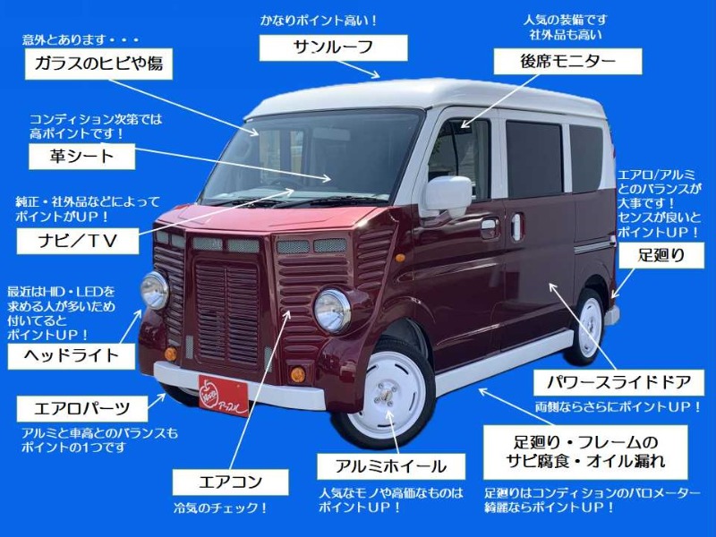 お車のご相談・ 査定だけでもOK! カンタン 入力 30秒 アップルがブランド買取始めました! お電話でも受付中! 受付時間10:00 ~ 19:00 04-7197-4436 お車のご相談・ 査定だけでもOK! カンタン 入力 30秒 アップルがブランド買取始めました! お電話でも受付中! 受付時間10:00 ~ 19:00 04-7197-4436 アップルがブランド買取始めました! お電話でも受付中! 受付時間10:00 ~ 19:00 04-7197-4436 店舗情報 在庫車 スタッフ紹介 ブログ お客様の声 キャンペーン 無料査定 click [ つぶやき ] 2025/05/13 (火) 14:30 ★査定のポイントについて★ こんにちわ!本日はお客様のお車を拝見するときの査定のポイントをわかりやすくご説明いたします!「どう見られているの?」「どこがチェックされているの?」そんな疑問もスッキリ解決!気になることがあれば、どんどん聞いてくださいね☆彡◆ボディ全体の大きな傷やヘコミ◆車両に付いている機能が正常に作動しているかどうか◆エンジン・ミッション(変速機)・エアコンなど異音や作動◆鈑金・塗装・部品交換など修復痕から車両へのダメージ◆社内のヨゴレ・傷・コゲ・ワレ・ニオイなど◆衝突被害軽減ブレーキ・車間距離制御装置(ACC)などの安全性向上に関わるオプションもポイントがUP!他にもたくさんチェック項目がありますが、主に以上の様なポイントを考慮して査定しています! 2025-05-13 14:30:30 新しい記事へ 古い記事へ 最新記事 ★完全無料の手数料!★★必要書類についてのご案内★★買取価格はどう決まるの?★★キッズコーナーのご紹介★★ユーザーダイレクト販売とは?★ 店舗情報に戻る 月別アーカイブ 2025年06月(3)2025年05月(3)2025年03月(5)2025年02月(2)2025年01月(3)2024年09月(3)2024年08月(5)2024年07月(2)2023年04月(2)2023年01月(2)2022年12月(2)2022年11月(3)2022年10月(2)2022年09月(1)2022年07月(1)2022年06月(2)2022年05月(1)2022年04月(1)2022年01月(2)2021年12月(1)2021年11月(1)2021年08月(4)2021年07月(3)2021年06月(6)2021年05月(3)2021年04月(1)2021年02月(2)2021年01月(1)2020年12月(4)2020年10月(1)2020年09月(1)2020年08月(3)2020年07月(2)2020年05月(3)2020年04月(5)2020年02月(1)2020年01月(1)2019年12月(1)2019年11月(1)2019年10月(2)2019年09月(1)2019年08月(1)2019年07月(1)2019年06月(1)2019年05月(1)2019年04月(4)2019年02月(1)2019年01月(2)2018年12月(3)2018年11月(3)2018年10月(2)2018年09月(6)2018年08月(7)2018年07月(4)2018年06月(7)2018年05月(6)2018年04月(6)2018年03月(4)2018年02月(16)2018年01月(4)2017年12月(2)2017年11月(6)2017年10月(6)2017年09月(7)2017年08月(5)2017年07月(6)2017年06月(7)2017年05月(9)2017年04月(3)2017年03月(7)2017年02月(6)2017年01月(8)2016年12月(9)2016年11月(4)2016年06月(1)2016年04月(1)2016年01月(1)2015年12月(1)2015年03月(1)