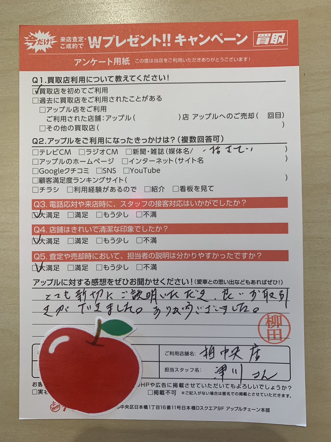 お車のご相談・ 査定だけでもOK! カンタン 入力 30秒 アップルがブランド買取始めました! お電話でも受付中! 受付時間10:00 ~ 19:00 04-7197-4436 お車のご相談・ 査定だけでもOK! カンタン 入力 30秒 アップルがブランド買取始めました! お電話でも受付中! 受付時間10:00 ~ 19:00 04-7197-4436 アップルがブランド買取始めました! お電話でも受付中! 受付時間10:00 ~ 19:00 04-7197-4436 店舗情報 在庫車 スタッフ紹介 ブログ お客様の声 キャンペーン 無料査定 click お客様の声 ご記入日: 2023/09/16 千葉県柏市 F様 車名:日産 エクストレイル とても親切にご説明いただき、良いお取引きができました。ありがとうございました。 前へ 次へ お客様の声一覧を見る