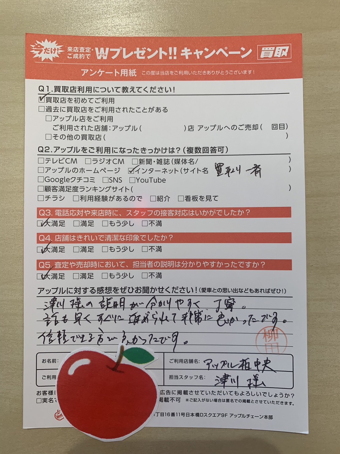 お車のご相談・ 査定だけでもOK! カンタン 入力 30秒 アップルがブランド買取始めました! お電話でも受付中! 受付時間10:00 ~ 19:00 04-7197-4436 お車のご相談・ 査定だけでもOK! カンタン 入力 30秒 アップルがブランド買取始めました! お電話でも受付中! 受付時間10:00 ~ 19:00 04-7197-4436 アップルがブランド買取始めました! お電話でも受付中! 受付時間10:00 ~ 19:00 04-7197-4436 店舗情報 在庫車 スタッフ紹介 ブログ お客様の声 キャンペーン 無料査定 click お客様の声 ご記入日: 2023/09/18 千葉県柏市 S様 車名:ホンダ フリード(H28年9月以降のハイブリッド含む) 津川様の説明が分かりやすく、丁寧。話も早くすぐに進められて非常に良かったです。信頼できる方で良かったです。 前へ 次へ お客様の声一覧を見る