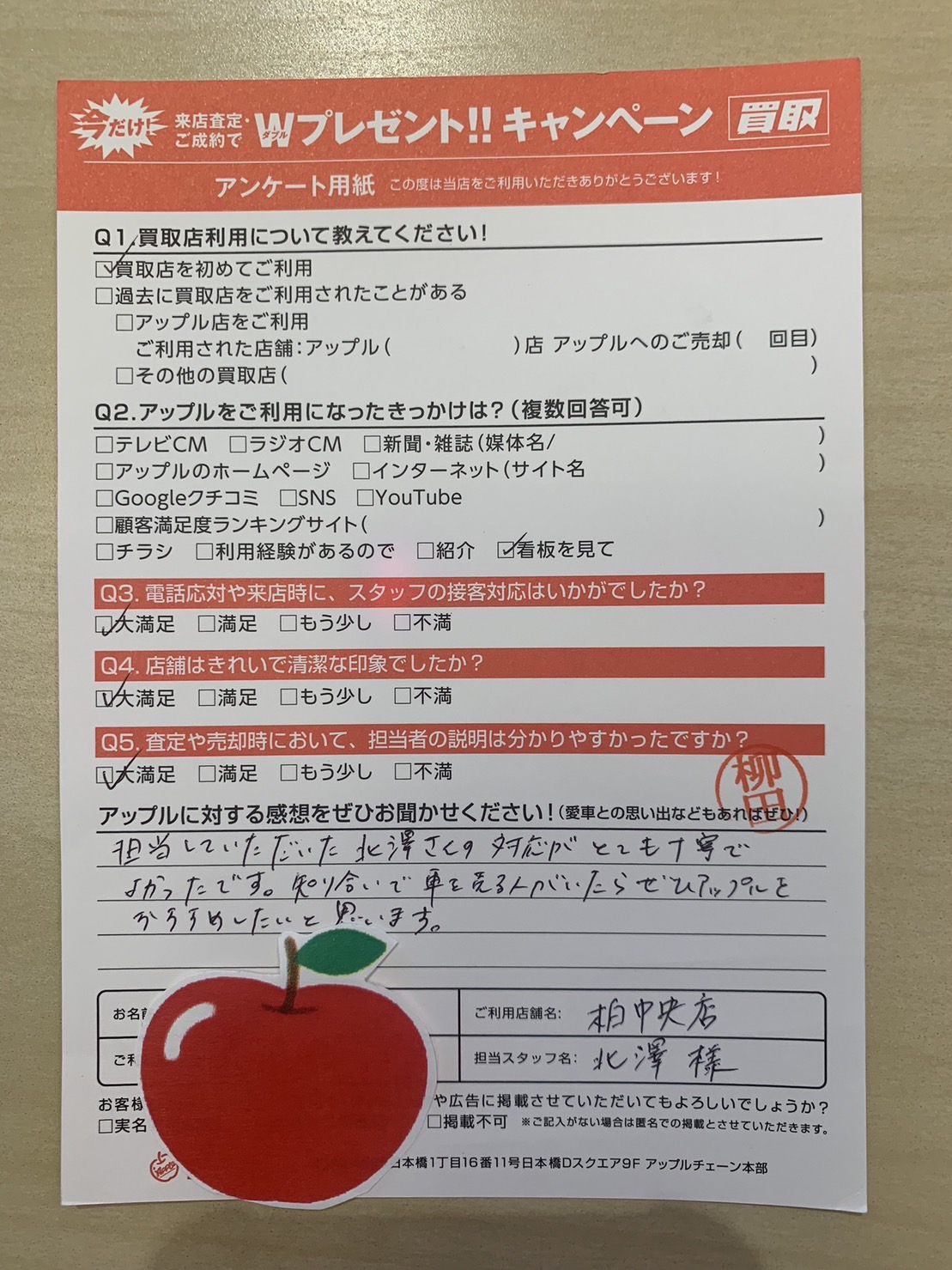 お車のご相談・ 査定だけでもOK! カンタン 入力 30秒 アップルがブランド買取始めました! お電話でも受付中! 受付時間10:00 ~ 19:00 04-7197-4436 お車のご相談・ 査定だけでもOK! カンタン 入力 30秒 アップルがブランド買取始めました! お電話でも受付中! 受付時間10:00 ~ 19:00 04-7197-4436 アップルがブランド買取始めました! お電話でも受付中! 受付時間10:00 ~ 19:00 04-7197-4436 店舗情報 在庫車 スタッフ紹介 ブログ お客様の声 キャンペーン 無料査定 click お客様の声 ご記入日: 2023/10/12 東京都足立区 H様 車名:ダイハツ キャスト 担当していただいた北澤さんの対応がとても丁寧でよかったです。知り合いで車を売る人がいたら、ぜひアップルをおすすめしたいと思います。 前へ 次へ お客様の声一覧を見る