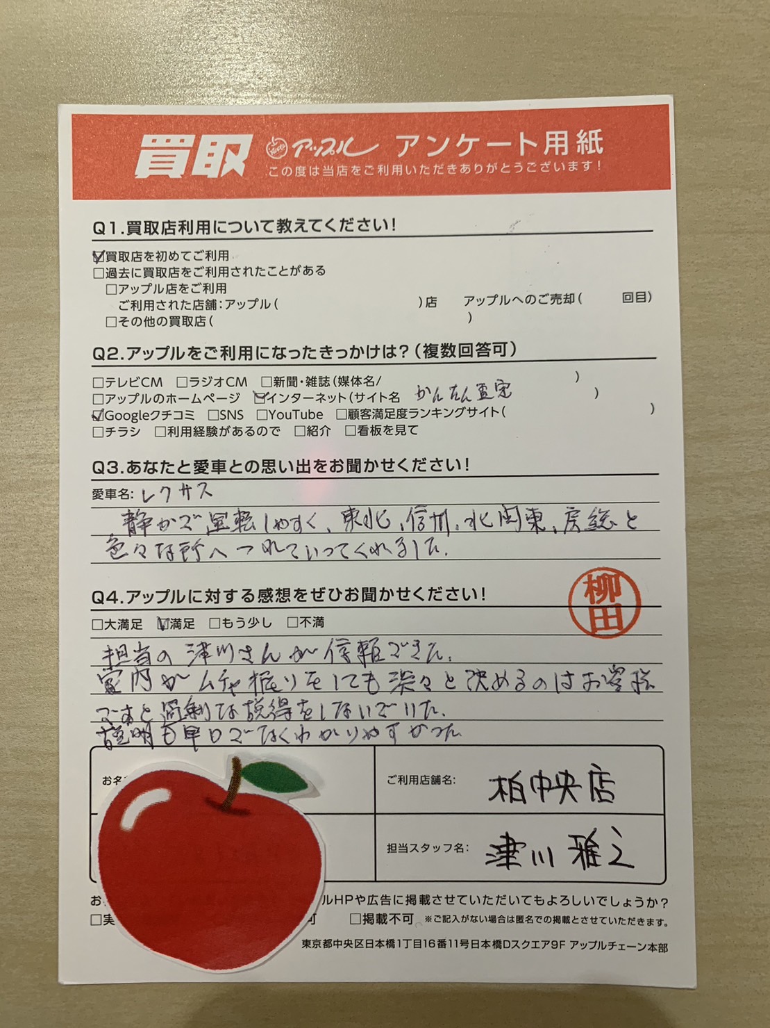千葉県柏市 M様 車名:レクサス CT (国内仕様 右H)