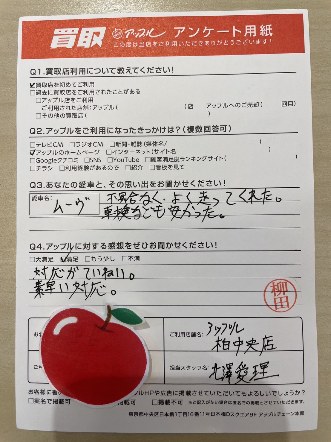 Q.アップルに対する感想をぜひお聞かせください!