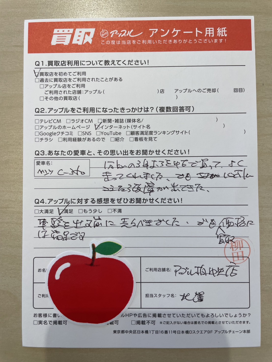 Q.アップルに対する感想をぜひお聞かせください!