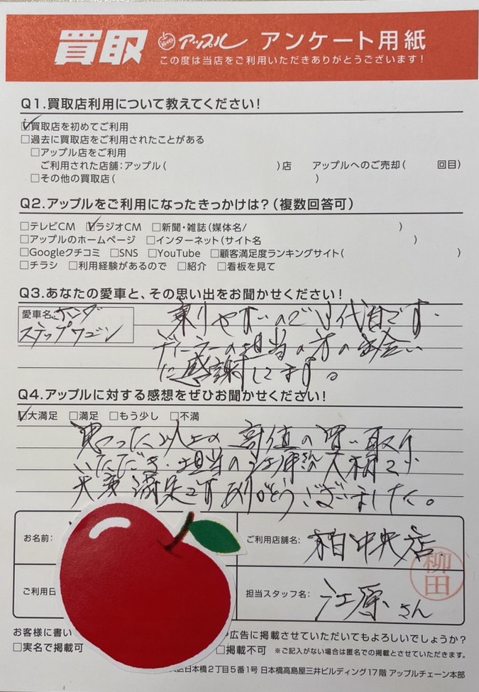 千葉県柏市 H様 車名:ホンダ ステップワゴン
