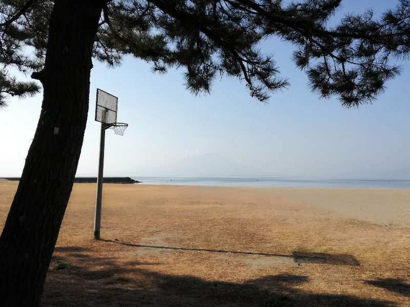 テント開けたら、桜島どーん、ってイメージでしたが思ったより小さく見えました。