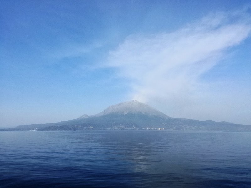 鹿屋基地を出発して、錦江湾を渡るフェリーに乗りました。桜島の噴煙が見えました。