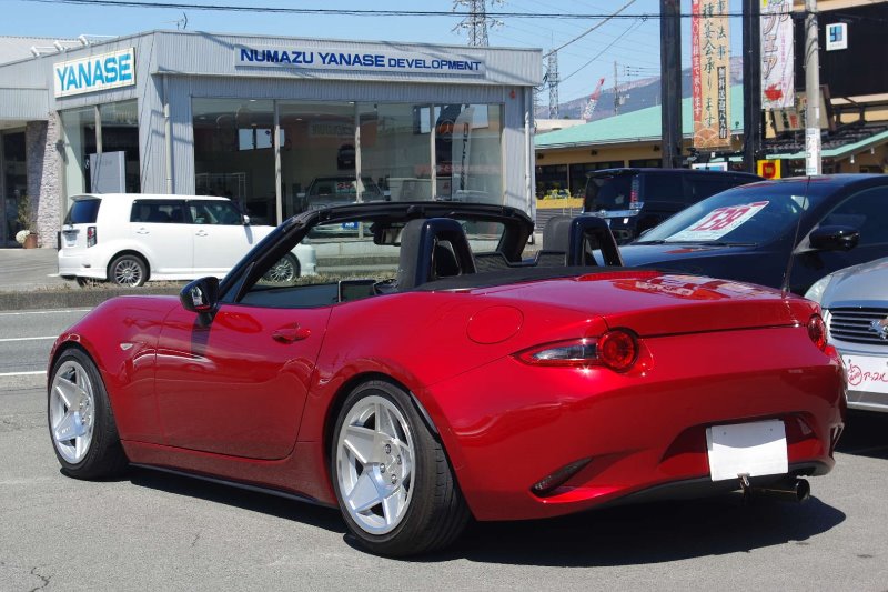 このソウルレッドと絶妙な車高、8Jギリギリツライチホイールがいい感じです。