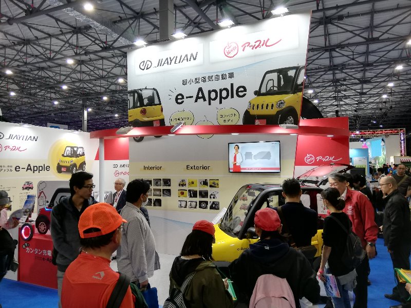 まずはアップル×JIAYUANの電気自動車ブースでございます。当店でも販売しているようなので、見ておかないと。今だお問い合わせを頂いたことはありませんが・・。