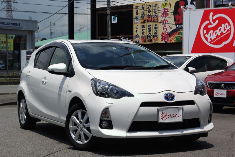 店頭に白いアクアが2台あります。