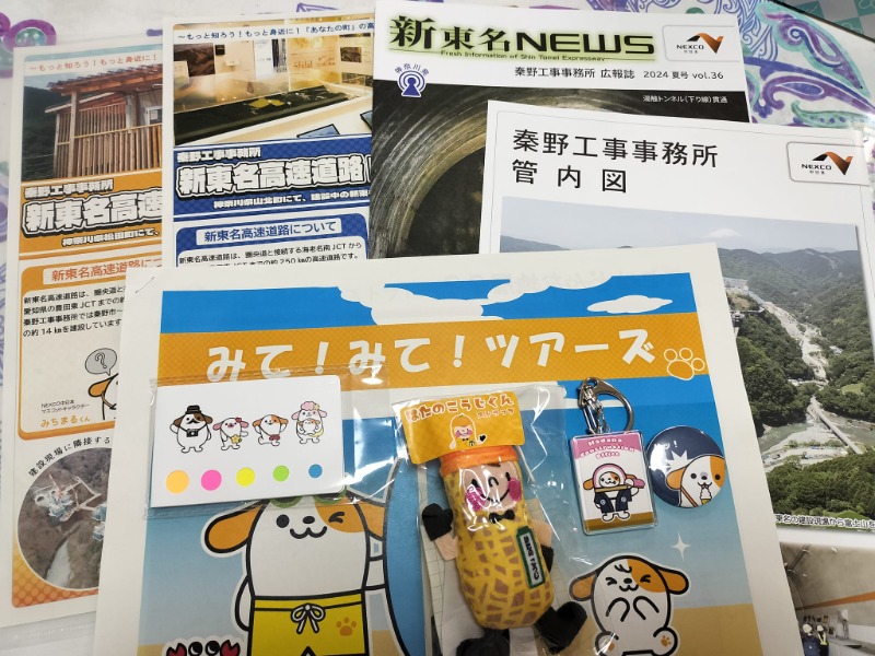 帰りに超レアなネクスコキーホルダーや「はたのこうじくん」人形、新東名ニュースなどのお土産付き。