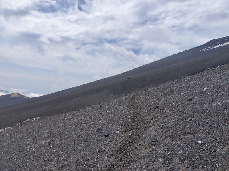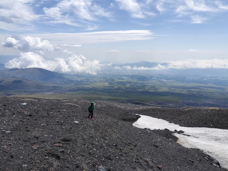 まずは幻の滝を目指します。須走口から約1時間くらいでしょうか。樹林帯を抜けると視界が開けます。そして遮るものが無いので風が強いです。