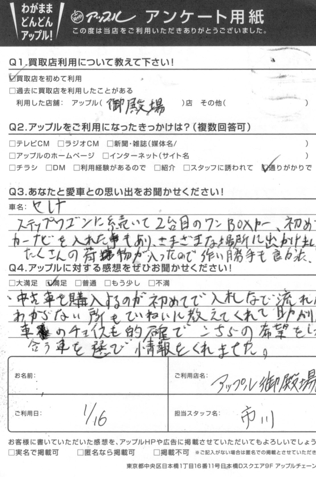 ・アップルに対する感想をぜひお聞かせください・・満足