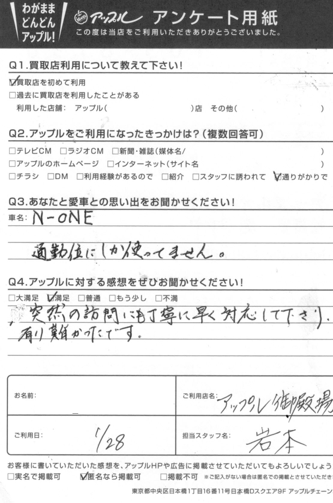 N-ONE買取 M.K様 車名:ホンダ N-ONE