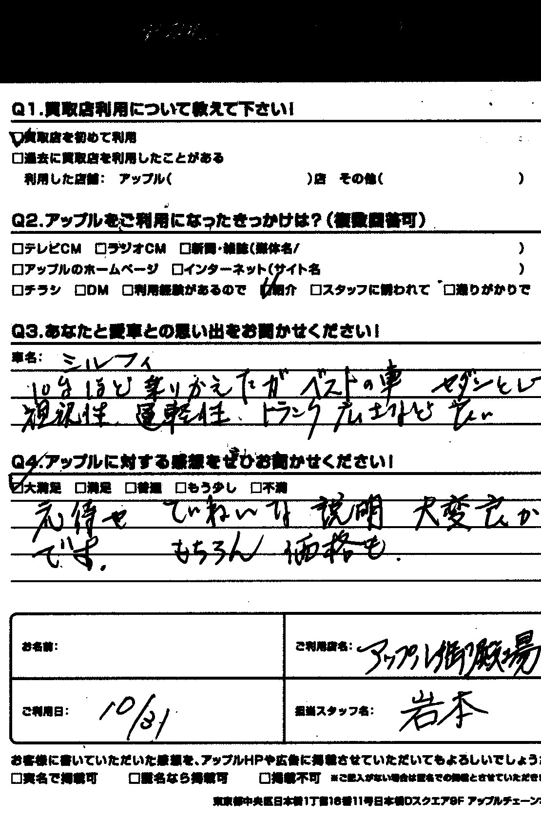 シルフィ買取 Y.I様 車名:日産 シルフィ