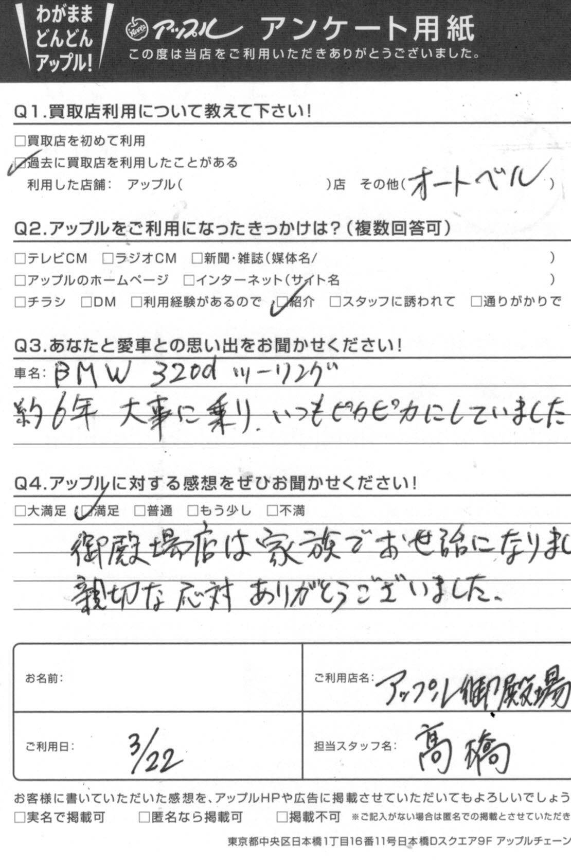 320dツーリング買取 M.Y様 車名:BMW 3シリーズツーリング