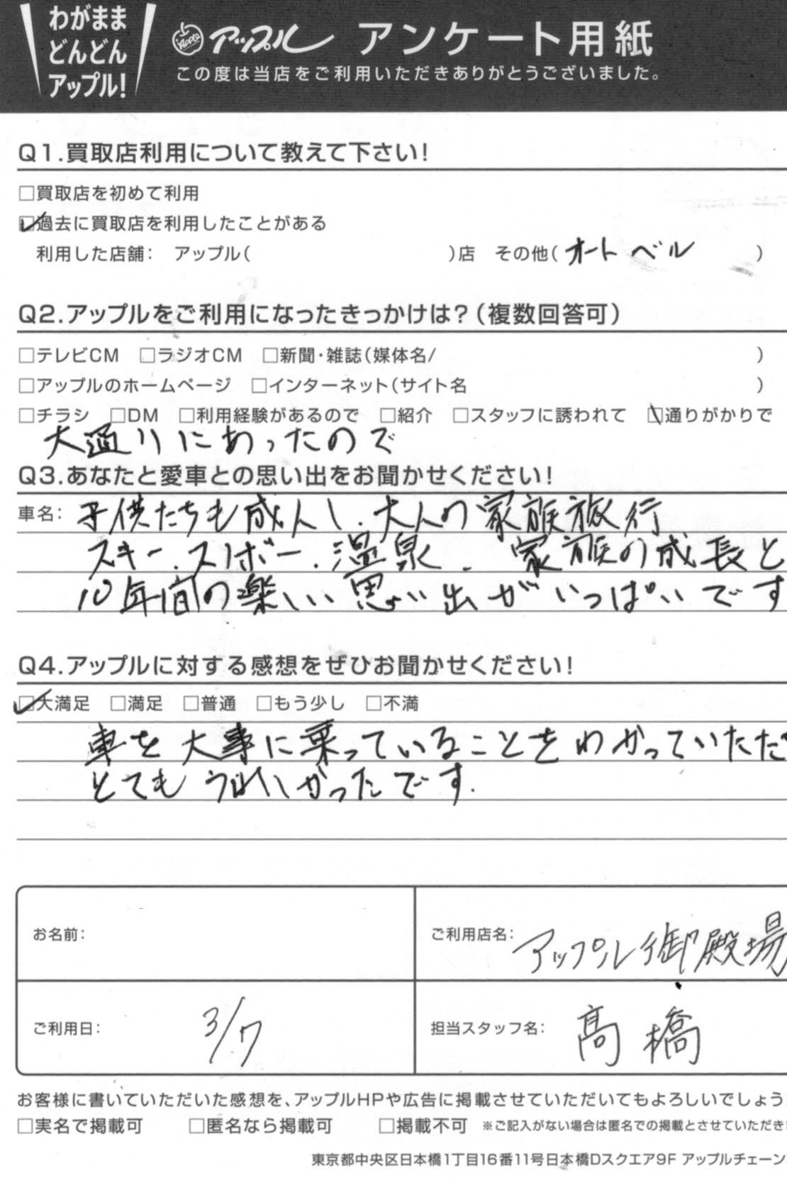 車を大事に乗っていることをわかっていただいてとてもうれしかったです。