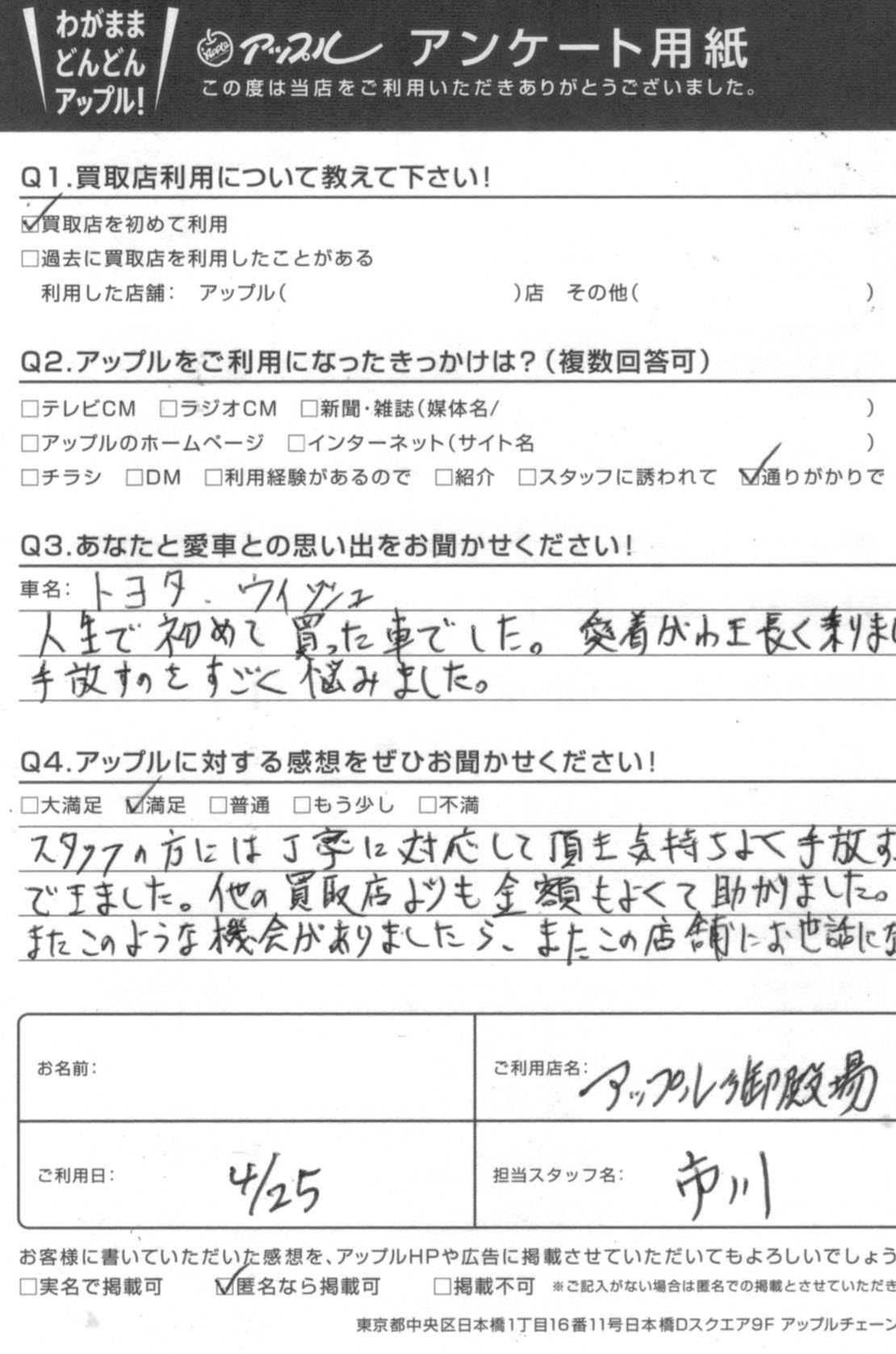 ・アップルに対する感想をぜひお聞かせください・・満足