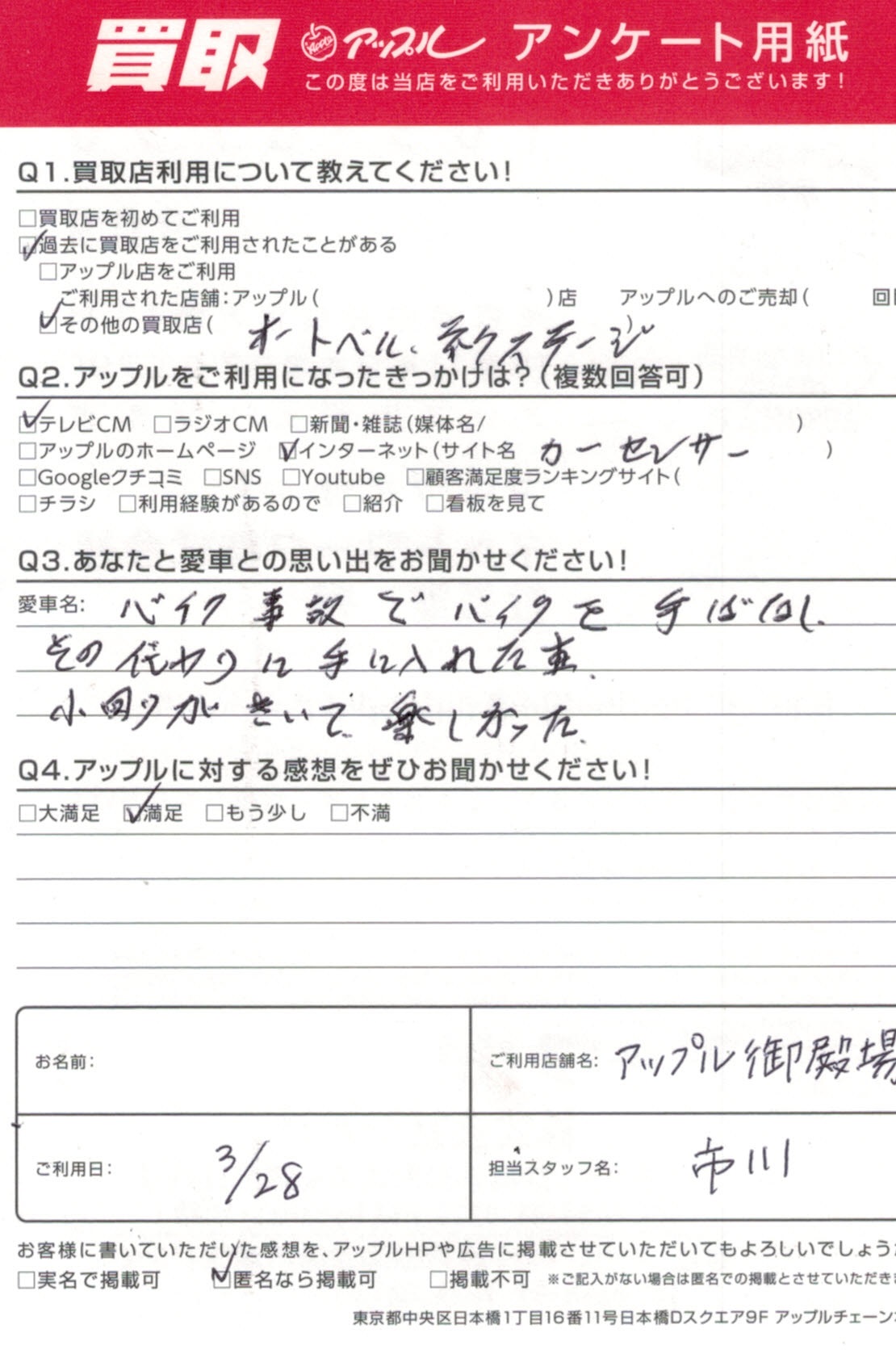 ・アップルに対する感想をぜひお聞かせください・・満足