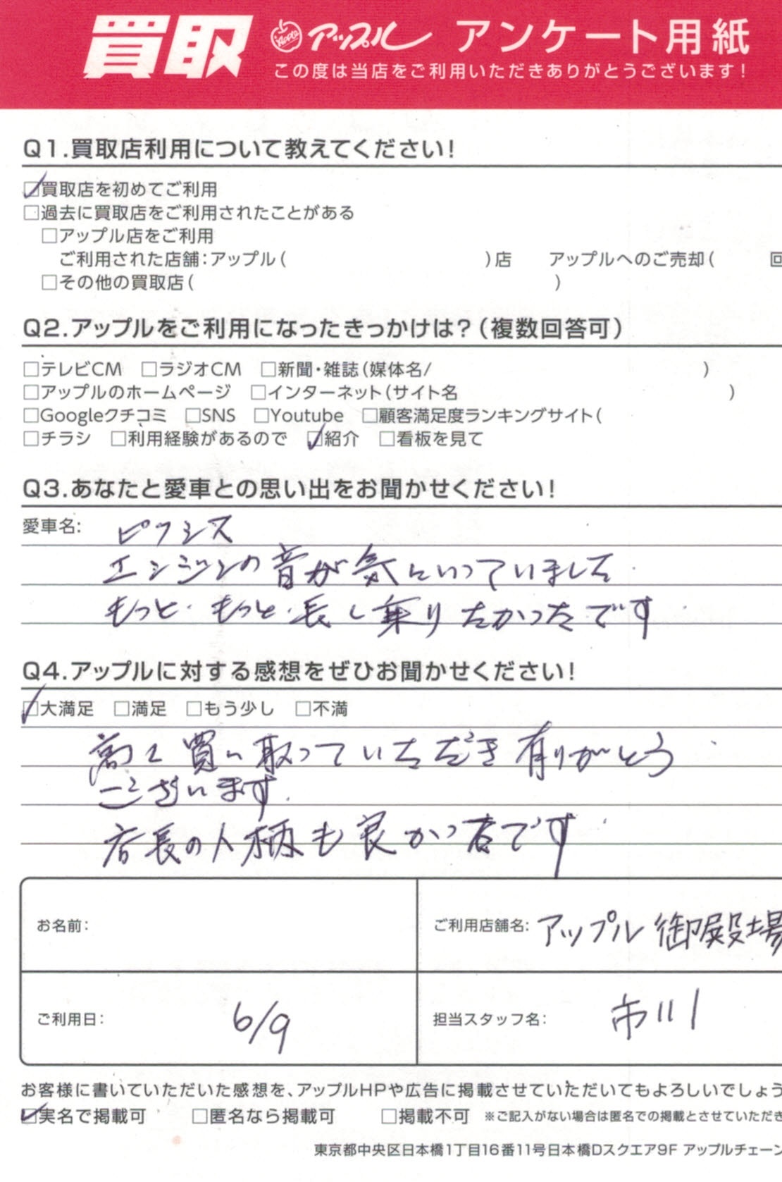 高く買い取っていただき有りがとうございます。