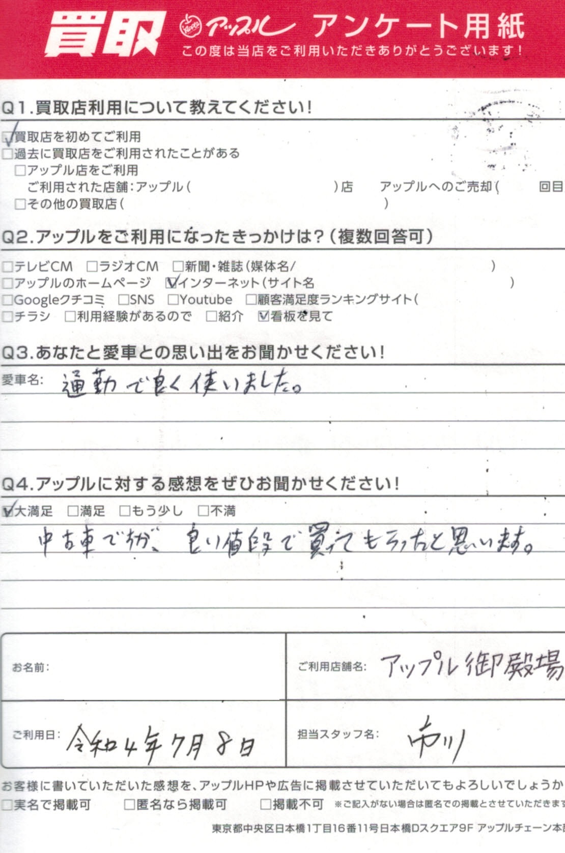 中古車ですが、良い値段で買ってもらったと思います。