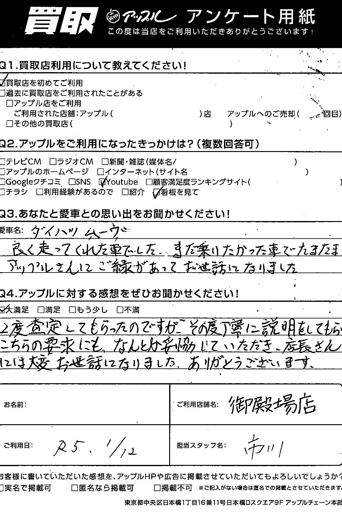 ムーヴ買取K・S様 車名:ダイハツ ムーヴ