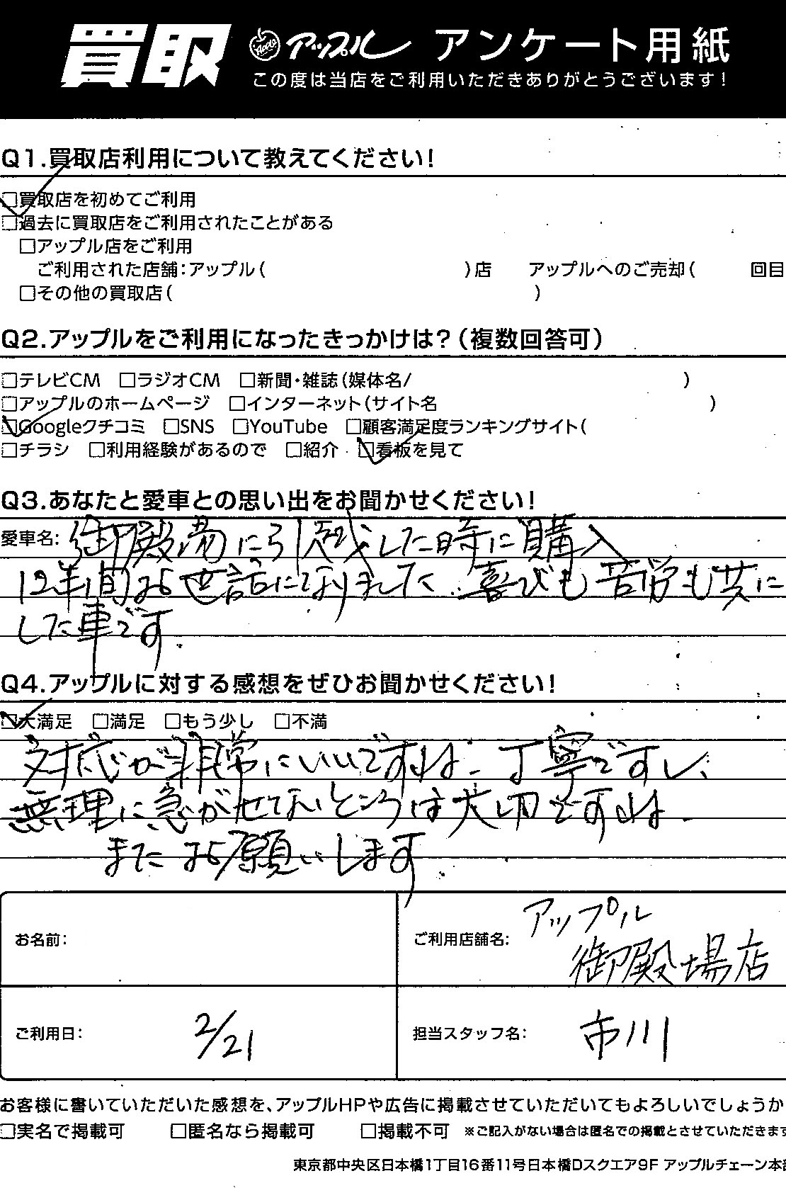 ・アップルに対する感想をぜひお聞かせください!・・・大満足