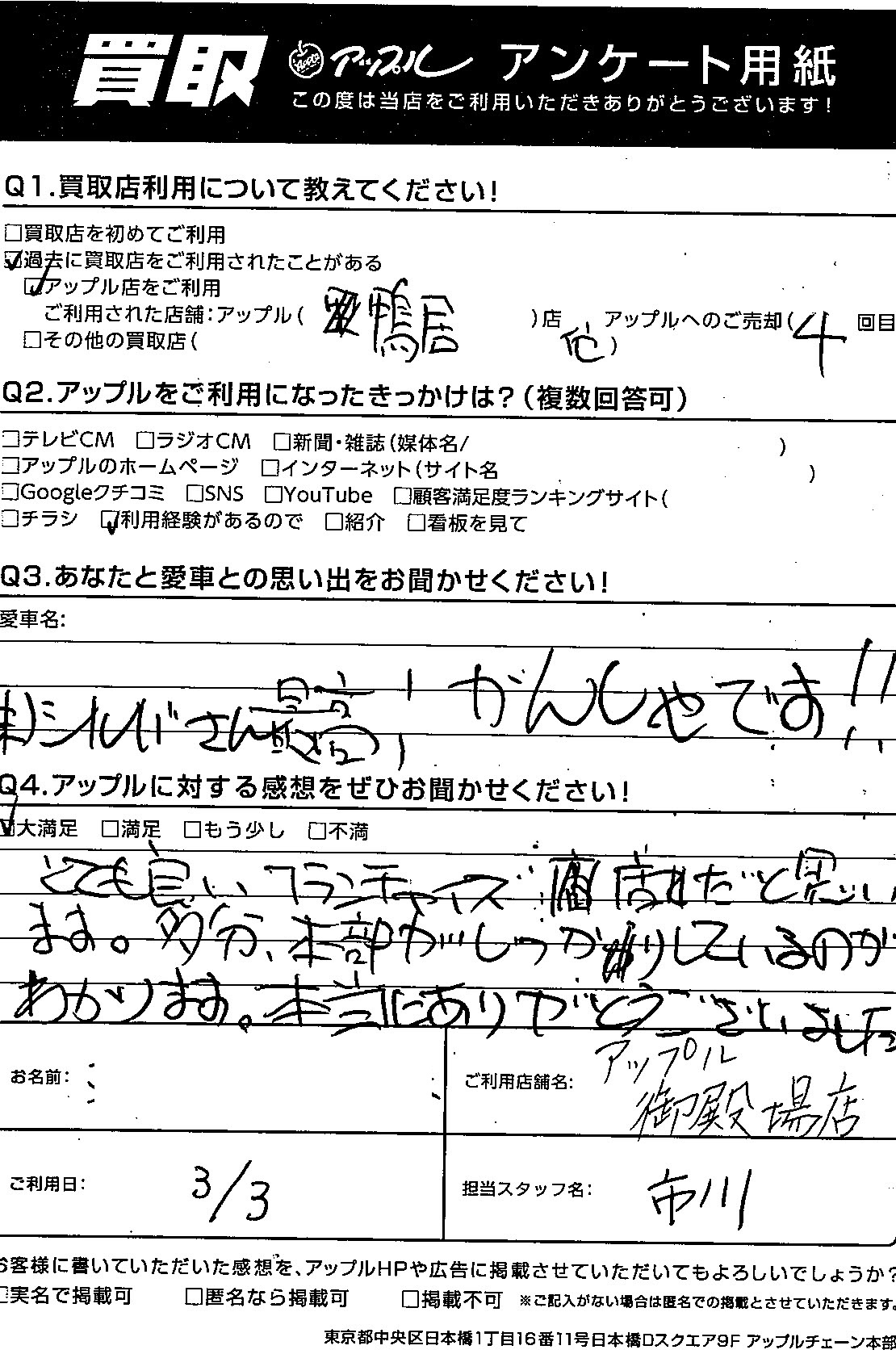 ・アップルに対する感想をぜひお聞かせください!・・・大満足