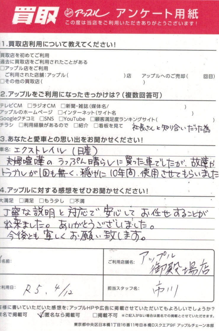 エクストレイル買取M・M様 車名:日産 エクストレイル