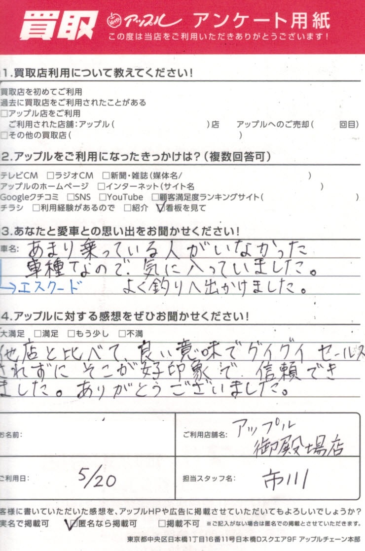 エスクード買取Y・Y様 車名:スズキ エスクード