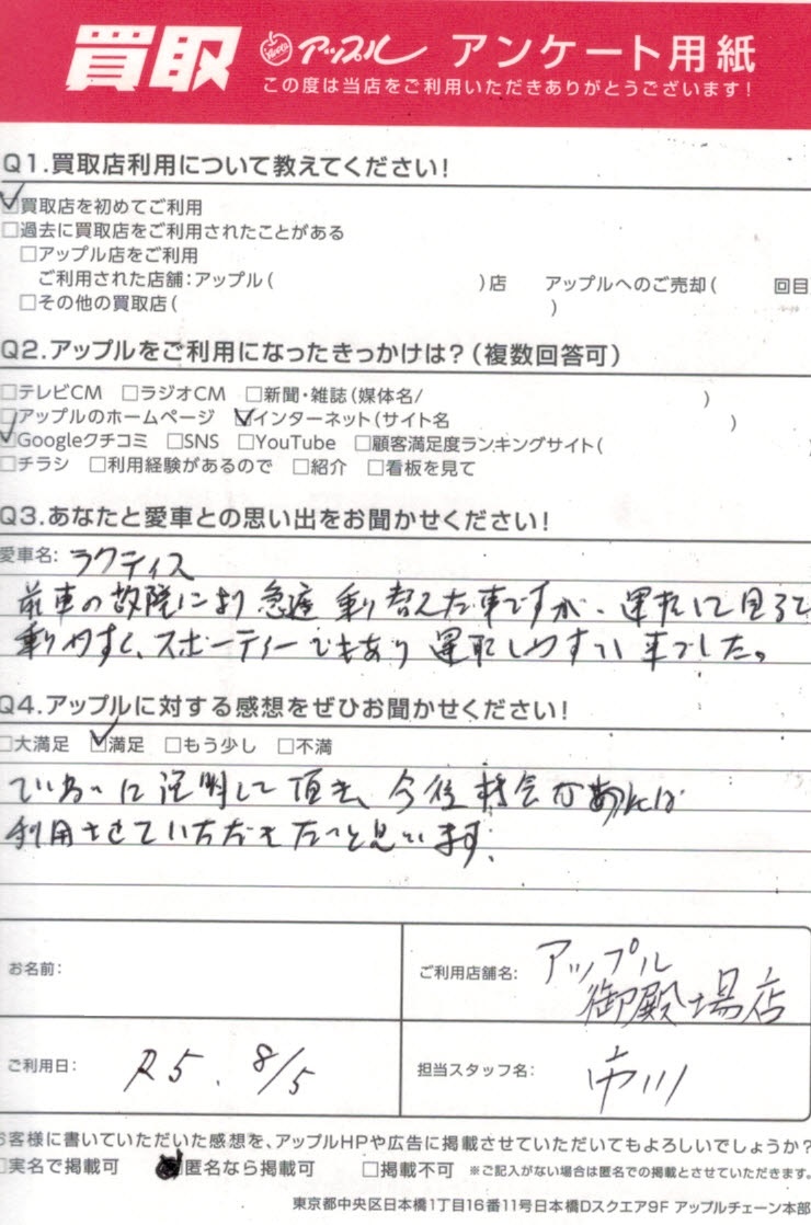 ラクティス買取H・S様 車名:トヨタ ラクティス