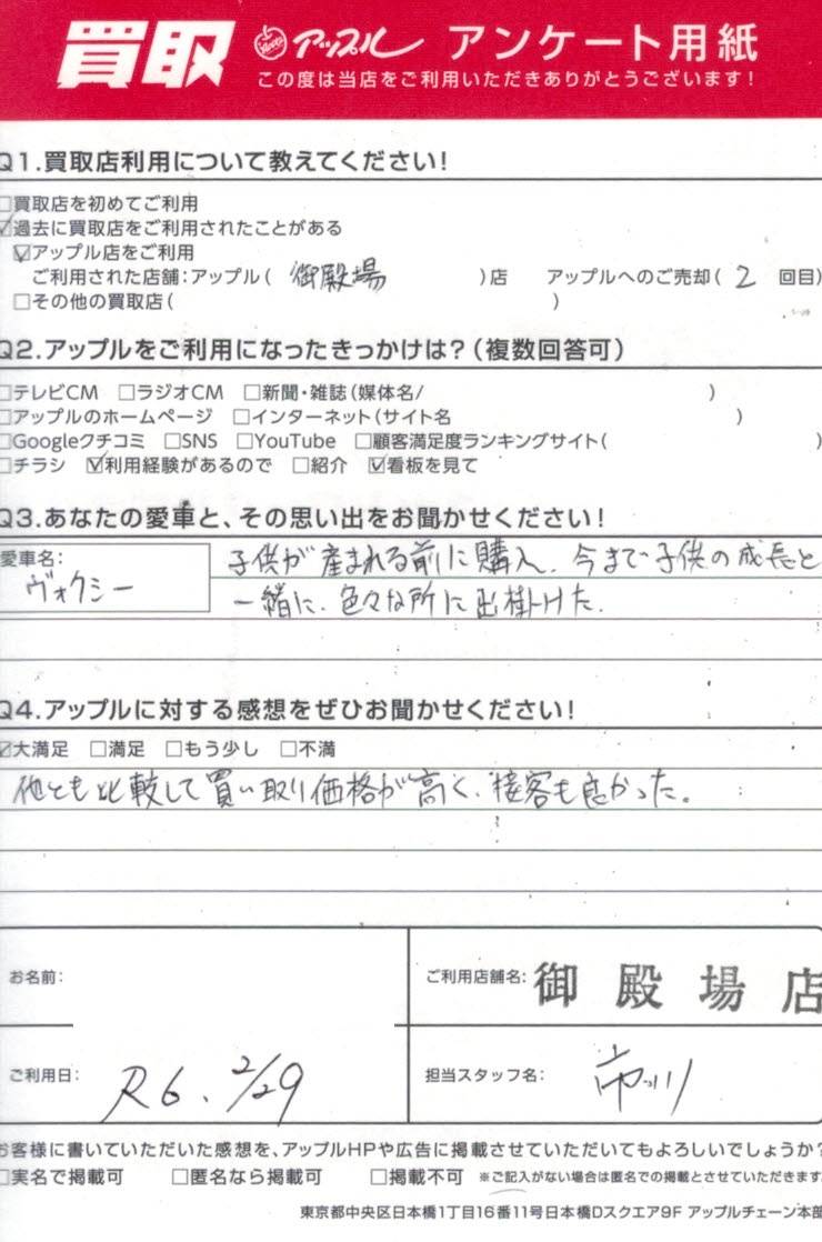 ヴォクシー買取O・H様 車名:トヨタ ヴォクシー